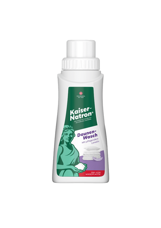 Zarte Daunen brauchen Schutz! Kaiser-Natron® Daunen-Wasch erhält die natürliche Spannung von Daunen und Federn, damit sie flauschig bleiben. Dafür sorgt die Extra-Portion an nachhaltigem Lanolin. Mit anhaltend frischem Duft!