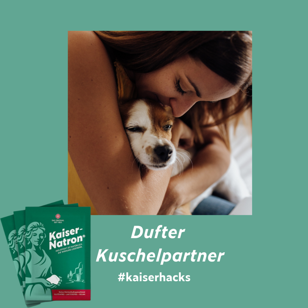 Mit seinem Vierbeiner zu kuscheln ist immer eine gute Idee, dabei werden bei Euch und der Fellnase Glückshormone ausgeschüttet und davon kann man nie genug gebrauchen. Aber was, wenn das Fell des Kuschelpartner müffelt? Es ist nicht selten, dass Hunde nach nassem Fell riechen oder sich beim Spaziergang in irgendetwas gewälzt haben, dass nicht gut riecht. Dank unseres #Kaiserhacks könnt Ihr diese Gerüche schnell neutralisieren. Ihr löst 1 TL Kaiser-Natron® in 100 ml Wasser auf und füllt das Natron-Wasser in eine Sprühflasche um. Ihr könnt nun Euren Kuschelpartner damit einsprühen, achtet aber bitte darauf, dass das Spray nicht in die Augen gelangt. Ansonsten ist der Gebrauch ganz unbedenklich. Dem Kuscheln und den Glückshormonen steht nun nichts mehr im Weg.
