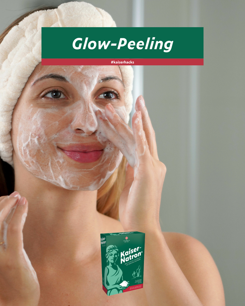Wünschst Du Dir Glow im Gesicht? Dann flitz in die Küche und hol Dir Kaiser-Natron® und Oliven- oder Kokosöl. Für den Glow ist es wichtig abgestorbene Hautpartikel zu entfernen. Dafür je 1 TL Kaiser-Natron® mit 1 TL Öl zu einer Paste verrühren und diese trägst Du dünn mit kreisenden Bewegungen auf Deinem Gesicht auf. Nach 15 Minuten Einwirkzeit kann die Maske mit lauwarmem Wasser abgewaschen werden. Du wirst erstaunt sein, wie gut sich Deine Haut nun anfühlt.