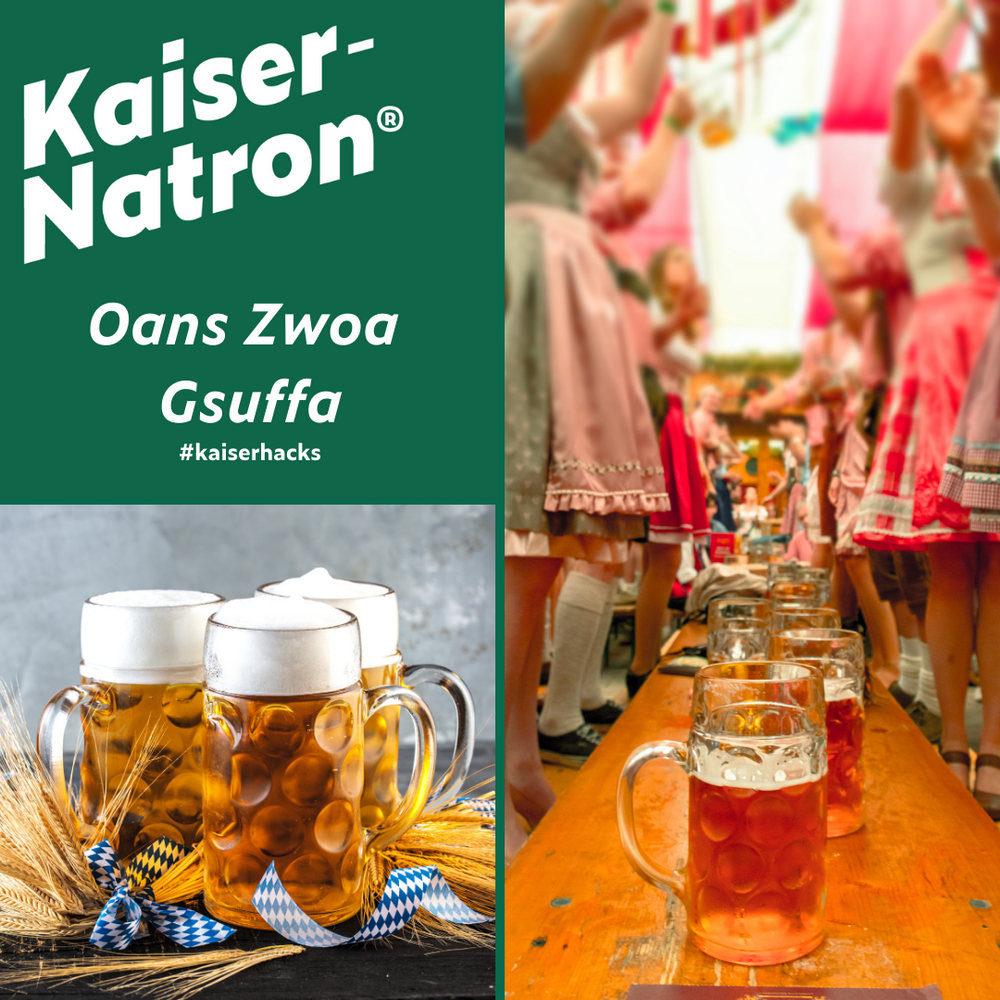 In München und überall zwischen Flensburg und dem Ballermann wird gerade das Oktoberfest in vollen Zügen gefeiert. Es wird gebusserlt, getanzt, geschwitzt und das ein oder andere Bier getrunken. Am nächsten Tag plagt einen dann die riesengroße Miezekatze im Schädel. Zum Glück gibt es bekannte „Mittelchen“ aus der Apotheke… Aber wusstet Ihr, dass Natron da auch sehr hilfreich ist? Der vom Natron regulierte Säure-Basen-Haushalt kann Wunder wirken. Dazu einfach 1 TL Natron in einem Glas Wasser auflösen und trinken. Ihr könnt Euch auch ein Homemade-Miezen-Mittelchen machen: 1 l Wasser mit ¼ TL Salz, ¼ TL Natron, 2 EL Zucker und Saft einer Orange mischen und trinken. Damit ist jedes Oktoberfest gerettet. Ein Prosit auf Natron!