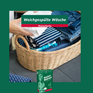 Was gibt es schöneres als frisch gewaschene kuschelweiche Wäsche… Ihr wollt aber keinen Weichspüler kaufen, weil sie der Umwelt schaden können? Ihr wollt weiche Baumwollhandtücher, die nicht mit herkömmlichen Weichspülern gewaschen werden sollen? Dann haben wir einen tollen #Kaiserhack für Euch. Ihr gebt 1 – 2 TL Kaiser-Natron® zum üblichen Waschmittel hinzu oder Ihr vermischt 1 – 2 TL Kaiser-Natron® mit 100 ml Wasser und gebt es ins Weichspülerfach der Waschmaschine und wascht dann ganz normal Eure Wäsche. Durch das Natriumhydrogencarbonat wird das Wasser enthärtet und die Wäsche besonders weich. Ihr spart dadurch Geld und Plastikmüll und schont die Umwelt. Bei Wolle und Seide sollte auf Natron verzichtet werden. Wir wünschen Euch viel Freude mit der kuschelweichen Wäsche.