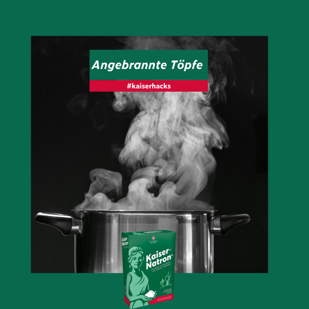 In der Küche können schnell ein paar Missgeschicke passieren. Zum Beispiel kann das Essen in Topf oder Pfanne anbrennen und Verkrustungen entstehen. Entweder Ihr scheuert kräftig oder Ihr macht es Euch leicht und nutzt unseren Kaiserhack. Ihr bringt einfach 1 EL Kaiser-Natron® und 1 Liter Wasser in dem Topf zum Aufkochen und der kleine „Brandschaden“ ist im Nu beseitigt.