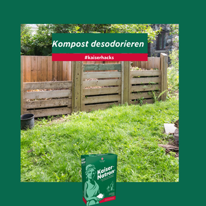 Ein Komposthaufen ist total sinnvoll und praktisch, aber leider kann er im Sommer unangenehme Gerüche verursachen. Zum Glück neutralisiert unser Alleskönner Gerüche. Löst 1 EL Kaiser-Natron® in 3 Liter Wasser auf und gießt es über den Kompost. Ihr solltet das aber nicht zu oft machen, da sonst die Kompostierung verlangsamt wird.
