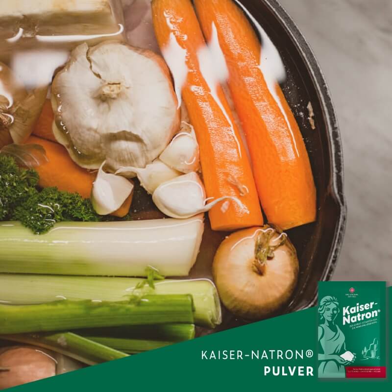 Kaiser-Natron® wirkt in Deiner Küche faszinierend vielseitig: beim Entsäuern von Speisen, zum Enthärten von Tee- und Kaffeewasser, um Gemüse zu säubern oder Backpulver zu ersetzen oder, oder, oder. Lass Dich überraschen und probier mal was Neues!