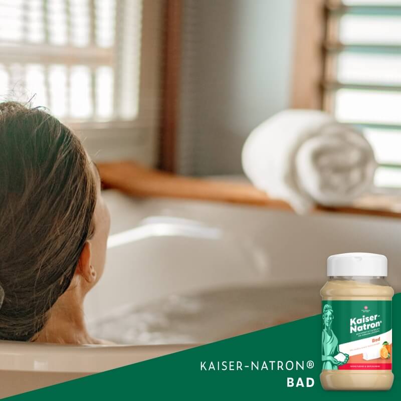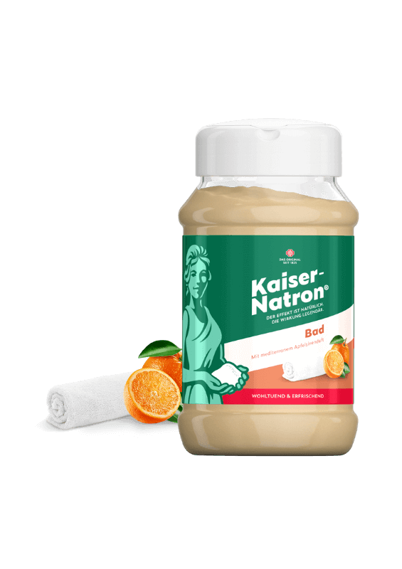 Ein warmes Wannenbad wirkt Wunder für Körper und Seele! Ideal ist Badewasser in Körpertemperatur, also 37° C. Mit dem Kaiser-Natron® Bad genießt Deine Haut außerdem noch den basischen pH-Wert von 8,5: Er unterstützt sie beim Aufbau des natürlichen Säureschutzmantels und macht sie zart und geschmeidig. On top umschmeichelt das Wohlfühlbad Deine Sinne mit herrlichem Orangenduft.